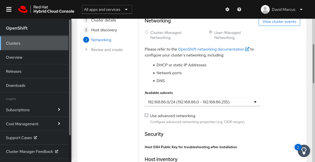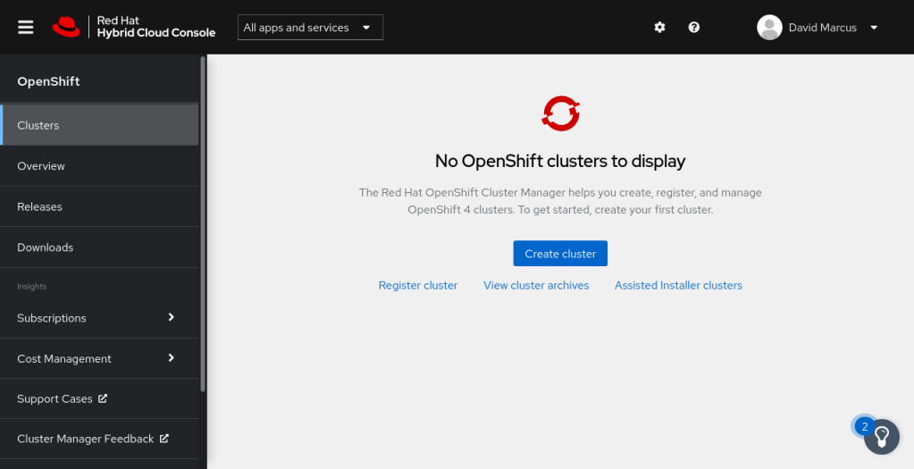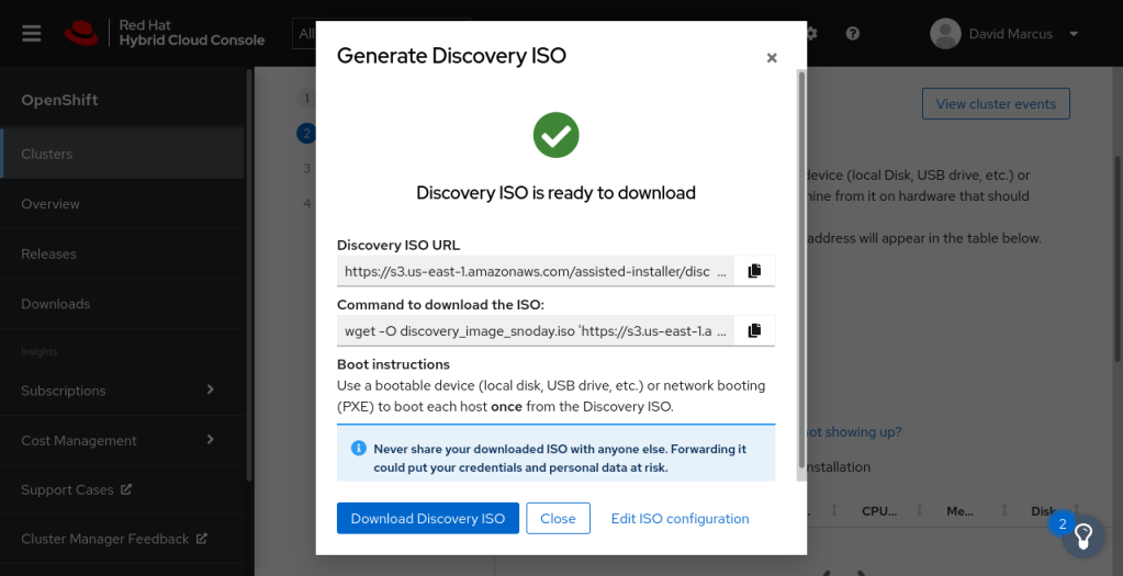 - On your laptop, Go to https://console.redhat.com/openshift/assisted-installer/clusters