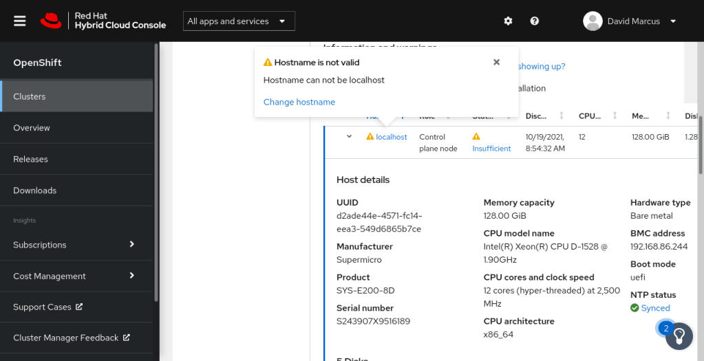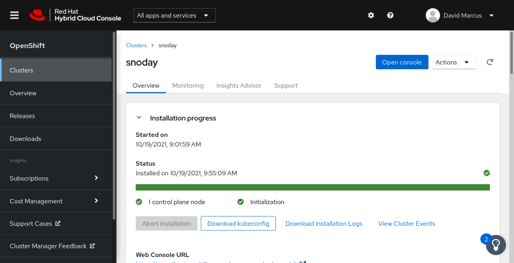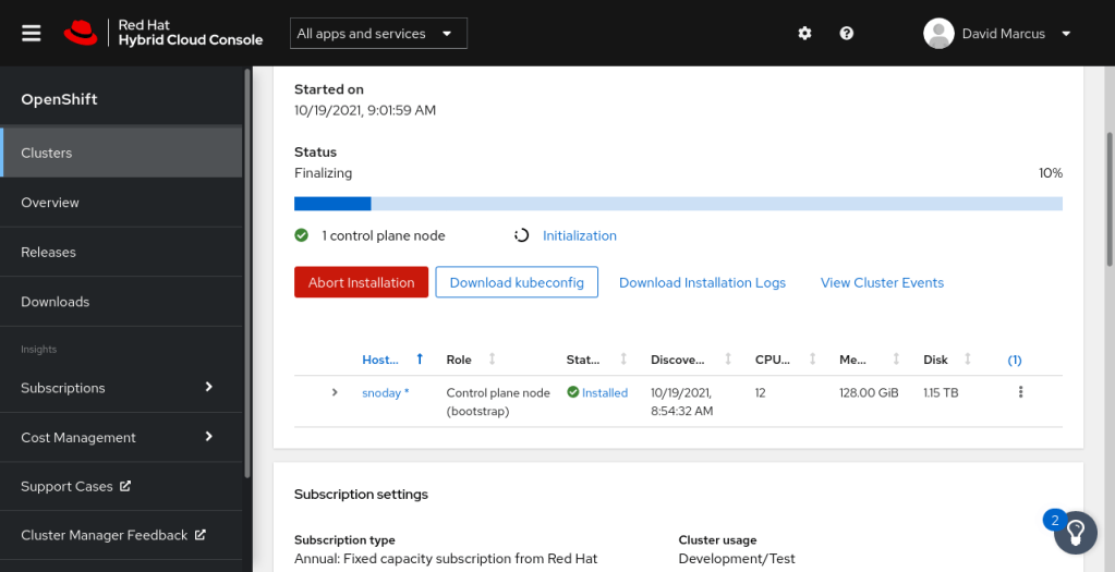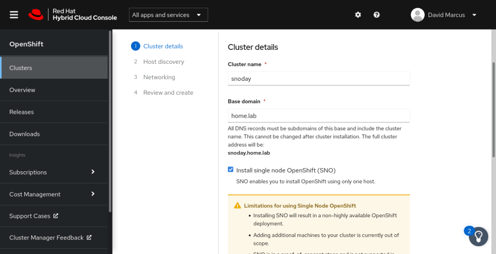 With Red Hat OpenShift 4.9 Generally Available yesterday (10/18/21), I figured I would see how easy it was to lay down Single Node OpenShift on a baremetal server using the Assisted Installer available from console.redhat.com. Short answer, it was 90 minutes easy.