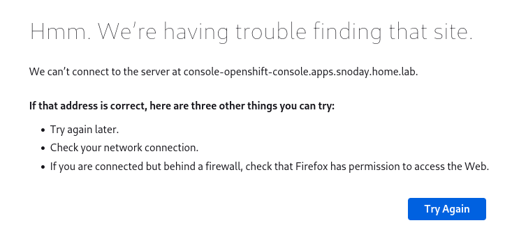 - Go to https://console-openshift-console.apps.snoday.home.lab/