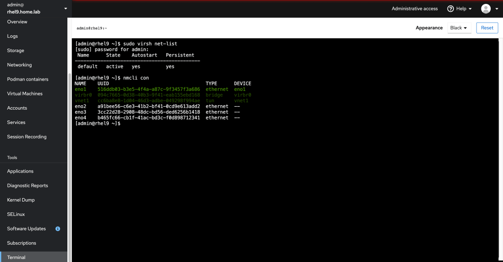 Head to the terminal, this’ll only take a minute. I used RHEL Cockpit Terminal feature for this.